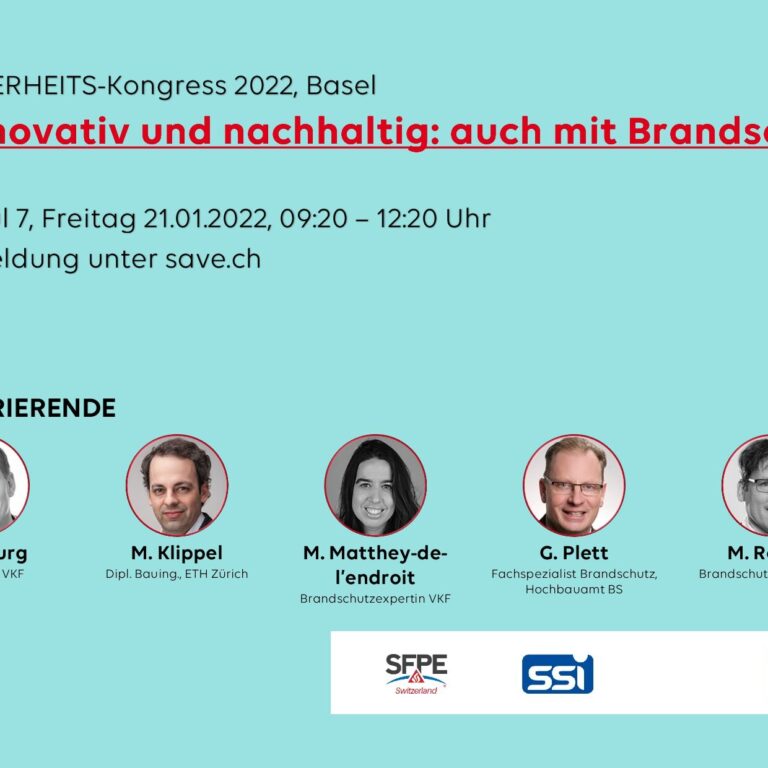Am 4. Februar 2021 findet als ZOOM-Webinar das SFPE Switzerland-Kolloquium 01/2021 mit Professor Dr. Lukas Arnold als Referent statt. In seinen Ausführungen widmet er sich der Thematik „Modelling the flame spread“. Das Webinar findet in Englischer Sprache statt, es erfolgt keine Übersetzung. Eine Anmeldung zu diesem Webinar ist zwingend erforderlich. Für Mitglieder von SFPE Switzerland…