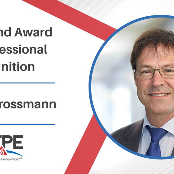 David Grossmann, Präsident und Gründungsmitglied von SFPE Switzerland, erhält den SFPE Lund Award.
